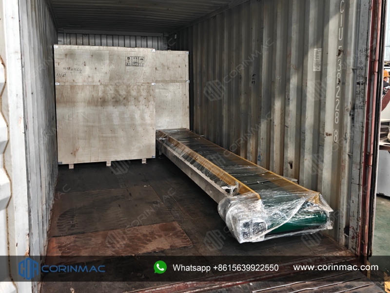 Event: On November 22, 2025. CORINMAC's customized air flotation packaging machine, horizontal finished product conveyor, inclined conveyor, control cabinet and spare parts have been successfully loaded into container and delivered to the UAE.