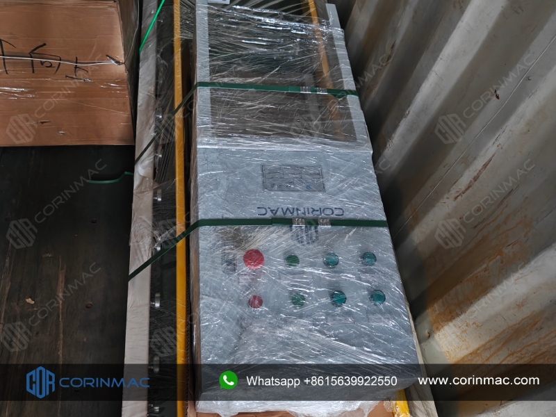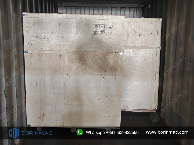 Event: On November 22, 2025. CORINMAC's customized air flotation packaging machine, horizontal finished product conveyor, inclined conveyor, control cabinet and spare parts have been successfully loaded into container and delivered to the UAE.